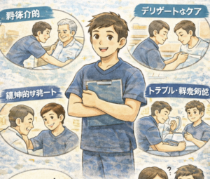 **訪問看護の現場で実際によくある「男性看護師が頼りにされる場面」**を、